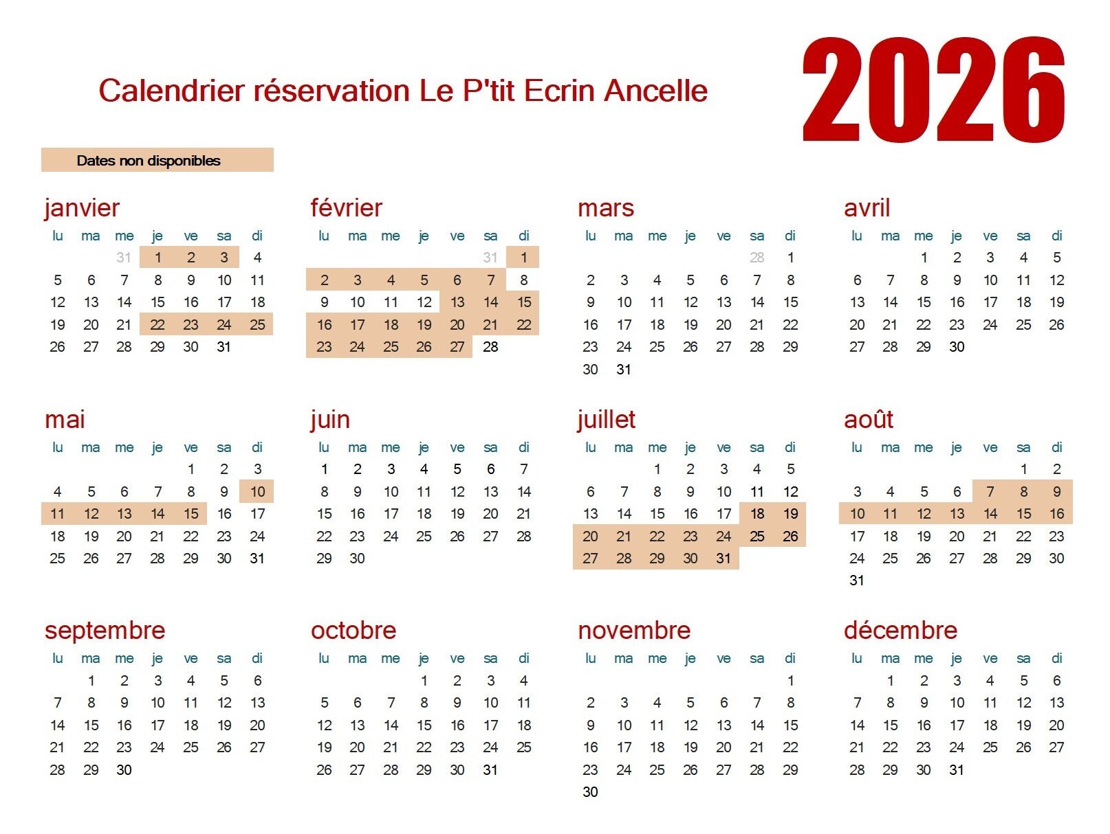 Merci de vérifier les disponibilités sur le calendrier ci-dessous et de remplir ce formulaire pour réserver le P'tit Ecrin. Une confirmation vous sera envoyée dans les 24h !